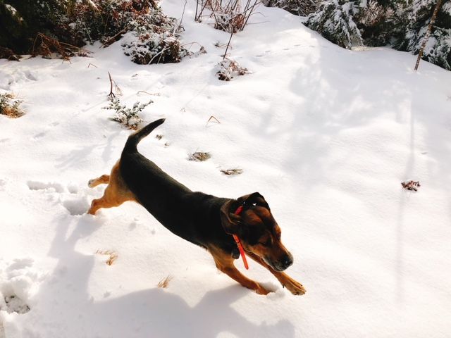 雪が降ったのでイノシシの足跡を追跡できるという事で、師匠に猟犬を連れた巻狩に参加させてもらいました。