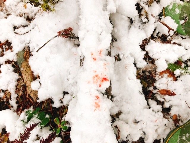 幸いにも雪が積もっていたため足跡も血痕も分かりやすい。
